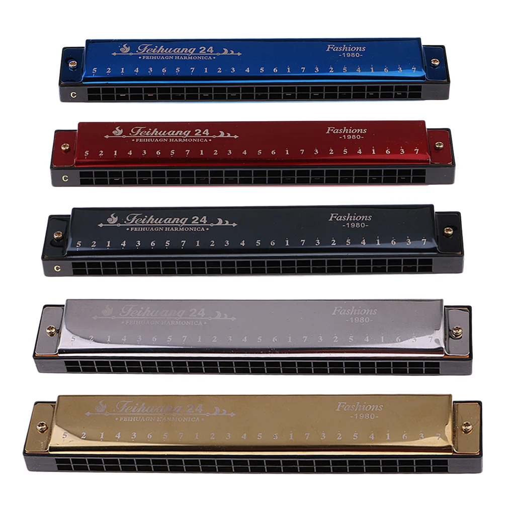 24 Holes Key C Tremolo Harmonica Mouth Organ Woodwind Instruments For Students Beginners