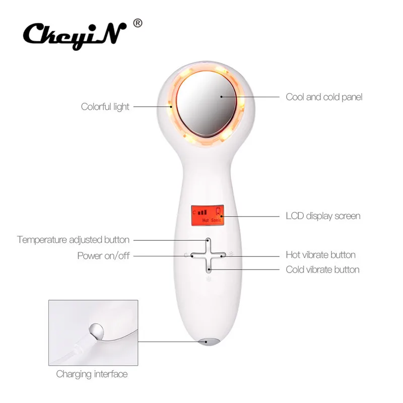 Sonic Vibration Facial Massager LED Hot Cold Hammer Facial Tightening Lifting Beauty Instrument Ski