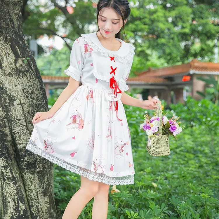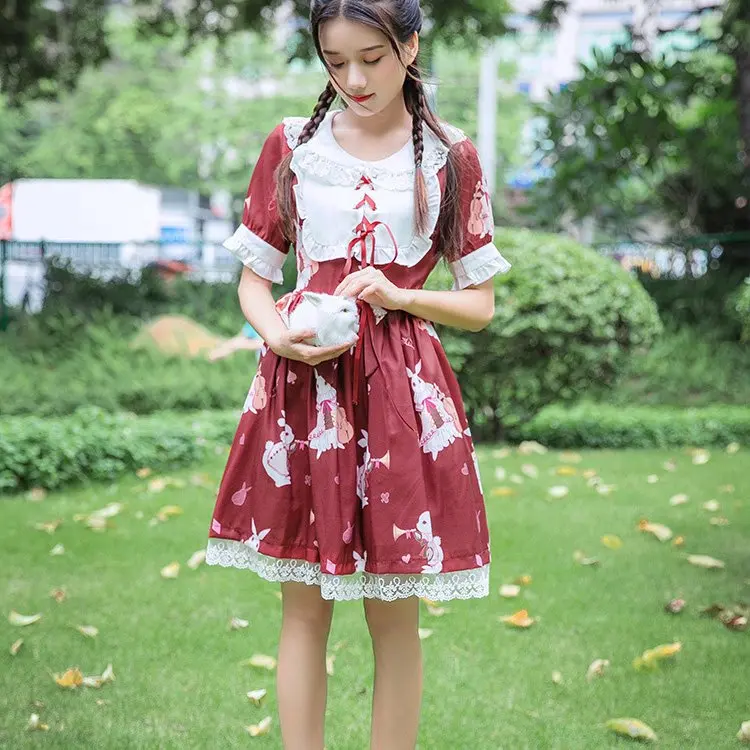Hot Sale Japanese cute lolita retro musical instrument rabbit dress Costumes slort sleeve long sleeve red wh